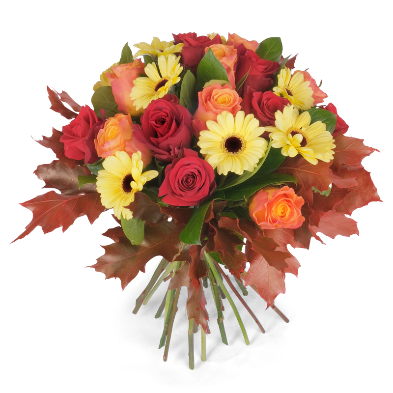 „Obfita Jesień” to bukiet pełen naturalnego wdzięku. Połączenie róż, gerber i liści klonu tworzy przyjemną, harmonijną całość. Każdy element został starannie dobrany. To kompozycja idealna na każdą okazję, bukiet, który emanuje spokojem i pięknem.