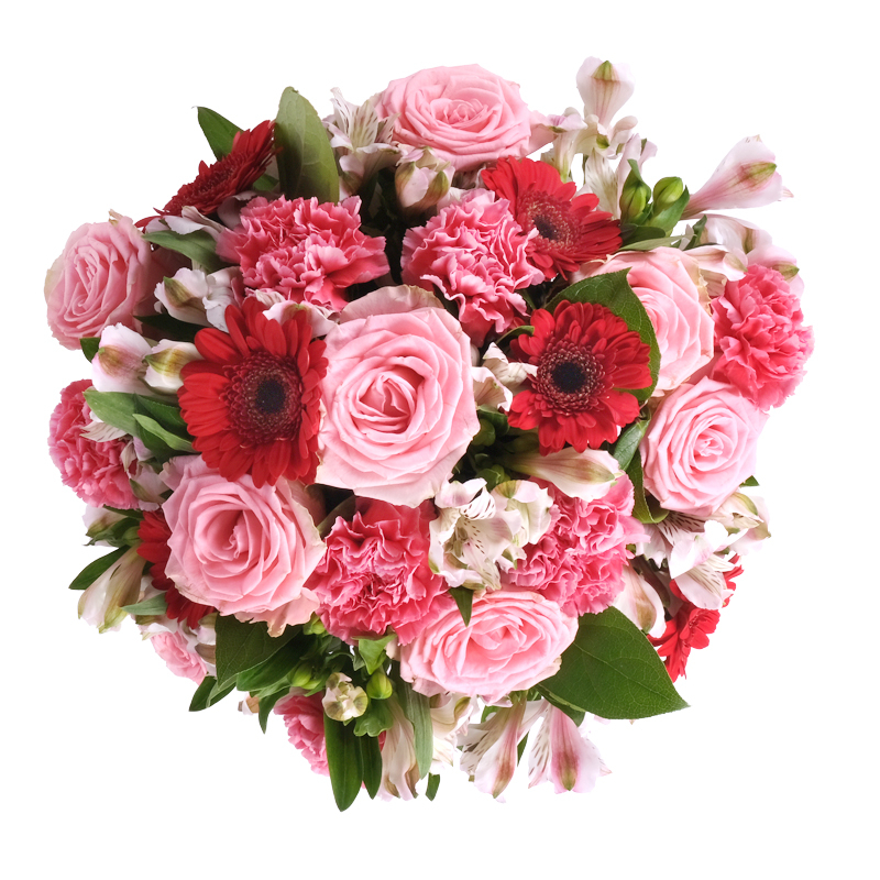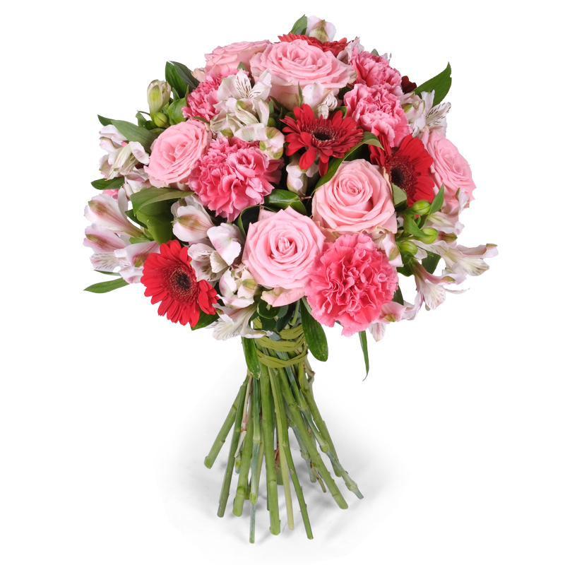 Zawsze świeże kwiaty Bukiet „Różowy Spokój” to kwiatowa kompozycja stworzona z myślą o równowadze. Każdy kwiat współgra tu z pozostałymi. Róże, gerbery, goździki i alstromerie tworzą spójną i elegancką całość. Subtelny, romantyczny i zawsze na czasie.
