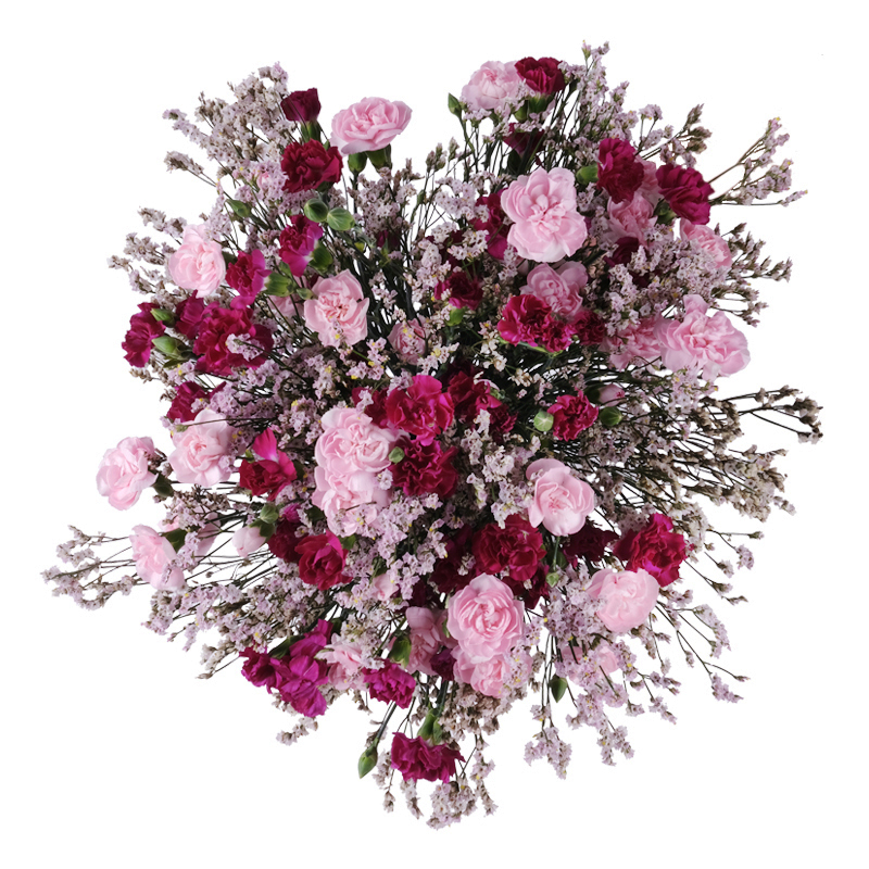 „Z nutą goździka” to bukiet, który się nie nudzi – sezonowe dodatki co chwilę zmieniają jego charakter, ale sercem zawsze pozostają goździki gałązkowe.